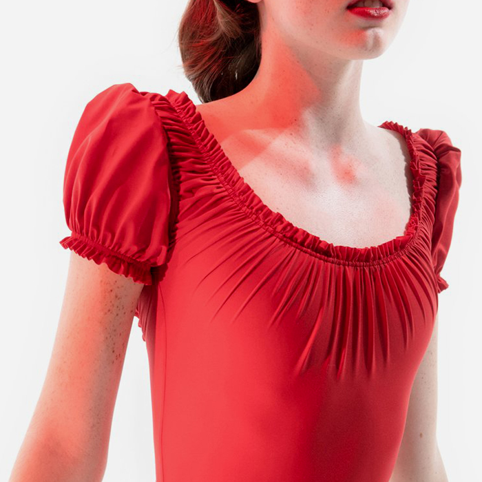 Just a Corpse MAIDEN leotard with short puff sleeves (lipstick red)